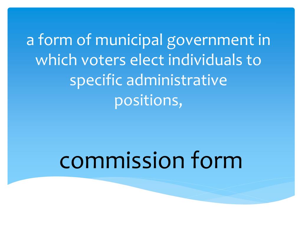 a form of municipal government in which voters elect individuals to specific administrativepositions, commission form