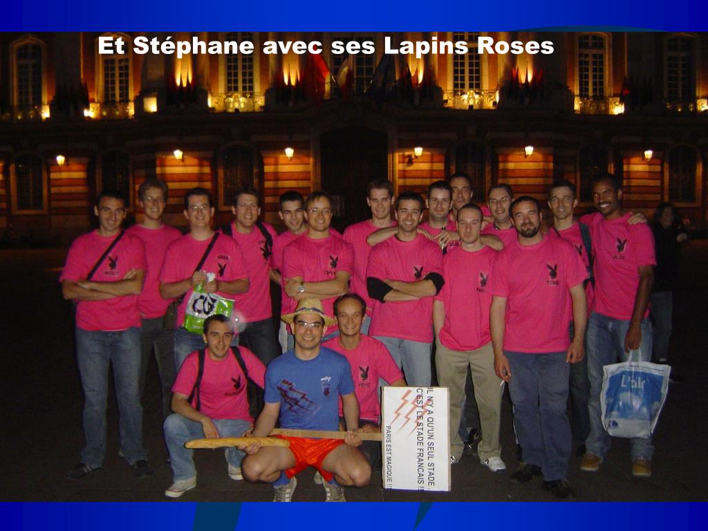EVJF- EVG Solène & Stéphane. 20-22 Mai 2005. Solène avait rendez vous avec ses Filles. Et Stéphane avec ses Lapins Roses. Solène avait mis ses beaux habits…. … Et Stéphane aussi !!!. Maintenant le concours peut commencer. Attention…. Solène commence fort. Stéphane contre attaque.
