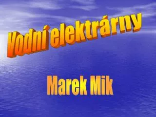 Vodní elektrárny. Marek Mik. Obecně. Energie vodních toků patří k nejstarším energetickým zdrojům, které se lidstvo ve své historii naučilo využívat. Jednu z prvních vodních elektráren postavil T. A. Edison roku 1882 v Appletonu a krátce nato pod Niagarskými vodopády.