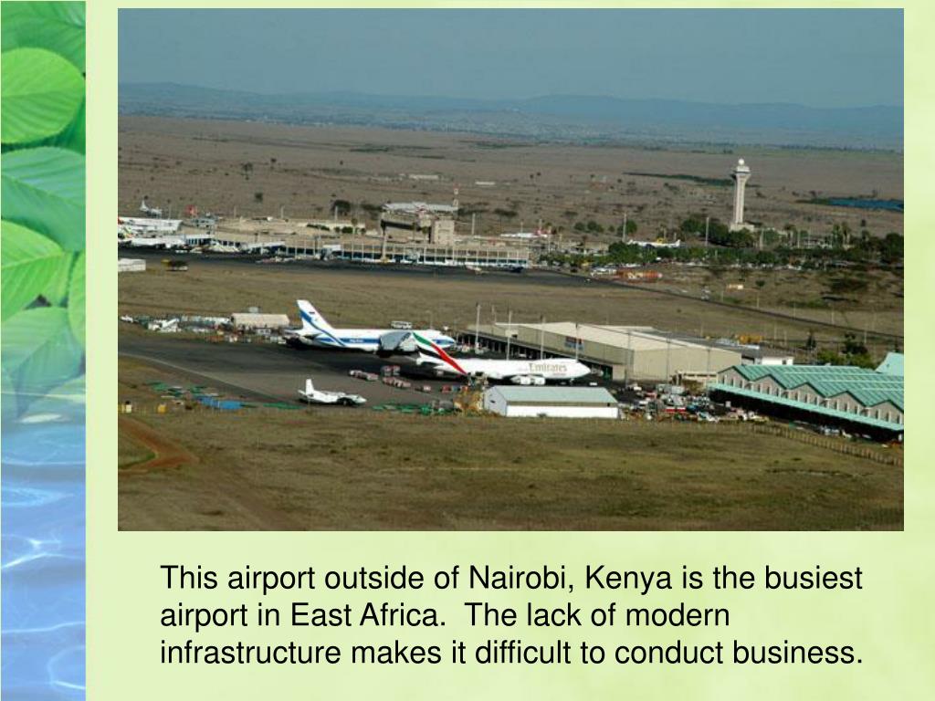 This airport outside of Nairobi, Kenya is the busiest airport in East Africa. The lack of modern infrastructure makes it difficult to conduct business.