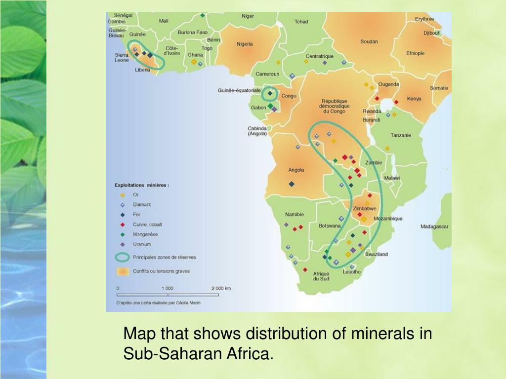 Map that shows distribution of minerals in Sub-Saharan Africa.