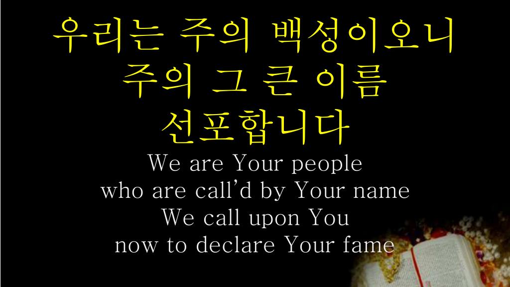우리는 주의 백성이오니 주의 그 큰 이름 선포합니다 We are Your people who are call’d by Your name We call upon You now to declare Your fame.