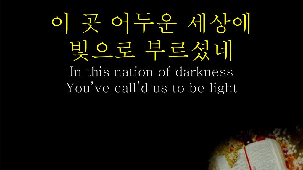 이 곳 어두운 세상에 빛으로 부르셨네 In this nation of darkness You’ve call’d us to be light