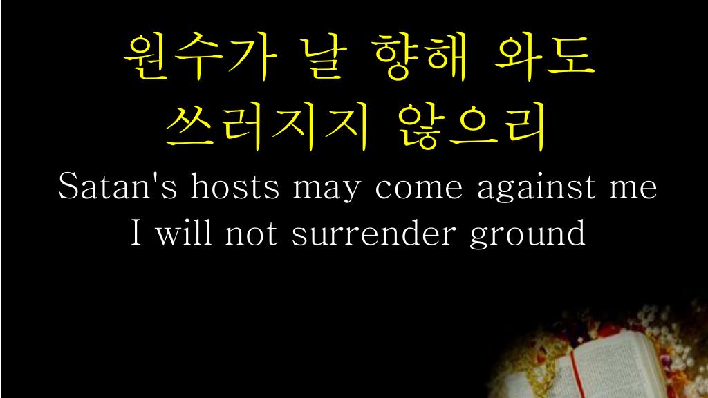 원수가 날 향해 와도 쓰러지지 않으리Satan's hosts may come against me I will not surrender ground