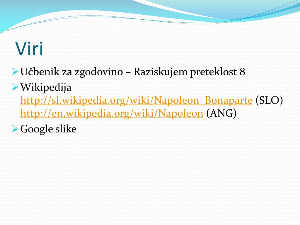 Viri • Učbenik za zgodovino – Raziskujem preteklost 8 • Wikipedija http://sl.wikipedia.org/wiki/Napoleon_Bonaparte (SLO) http://en.wikipedia.org/wiki/Napoleon (ANG) • Google slike