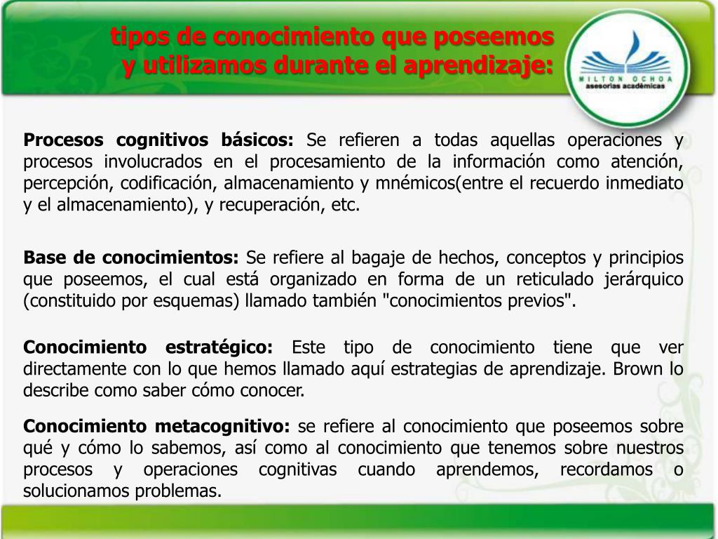 tipos de conocimiento que poseemos y utilizamos durante el aprendizaje:
