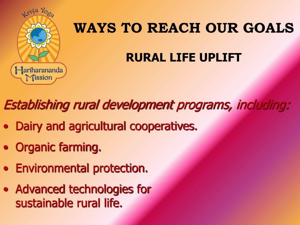 WAYS TO REACH OUR GOALS RURAL LIFE UPLIFT • Establishing rural developmentprograms, including: • Dairy and agriculturalcooperatives. • Organicfarming. • Environmentalprotection. • Advancedtechnologiesforsustainablerural life.