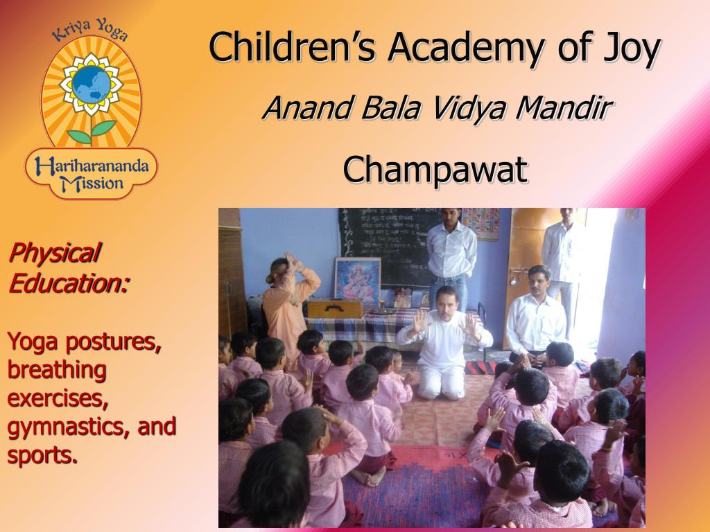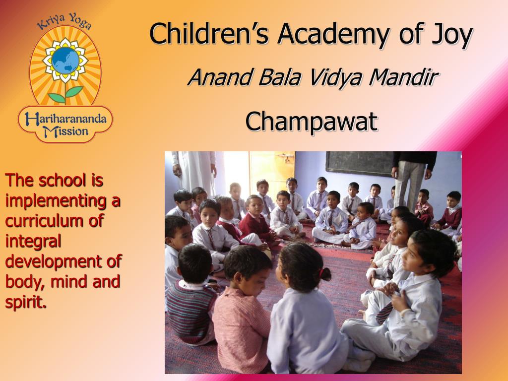 Children’s Academy of Joy Anand Bala Vidya Mandir Champawat The school is implementing a curriculum of integral development of body, mind and spirit.