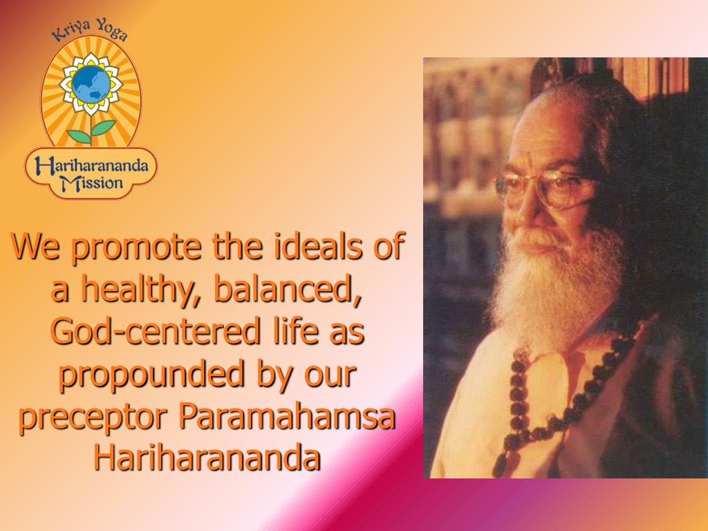 Wepromotetheideals of a healthy, balanced, God-centeredlife as propoundedbyour preceptor Paramahamsa Hariharananda