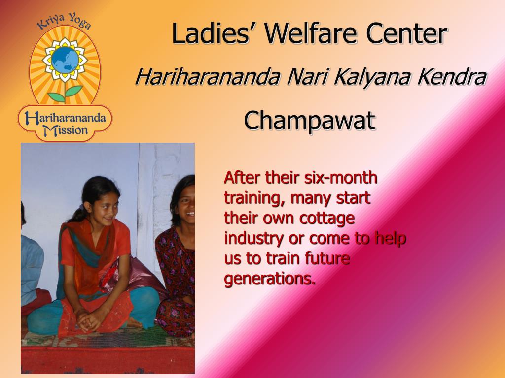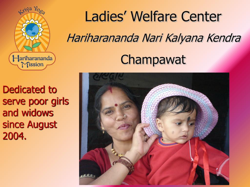 Ladies’ Welfare Center Hariharananda NariKalyana Kendra Champawat Dedicated to serve poor girls and widows since August 2004.