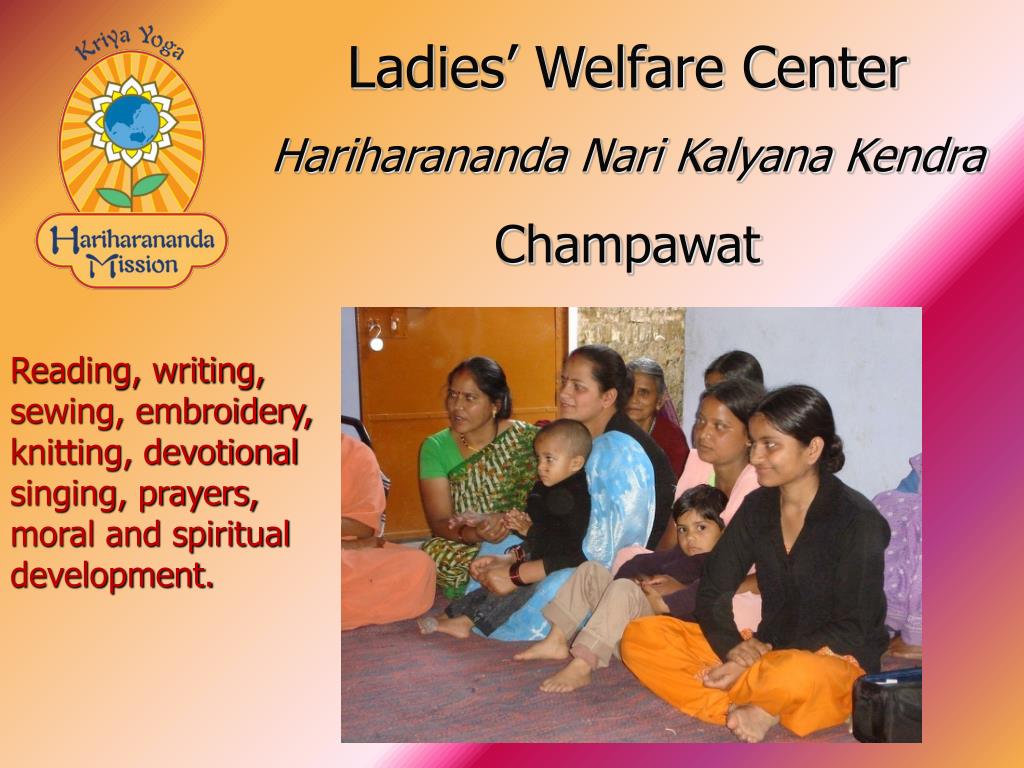 Ladies’ Welfare Center Hariharananda NariKalyana Kendra Champawat Reading, writing, sewing, embroidery, knitting, devotional singing, prayers, moral and spiritual development.