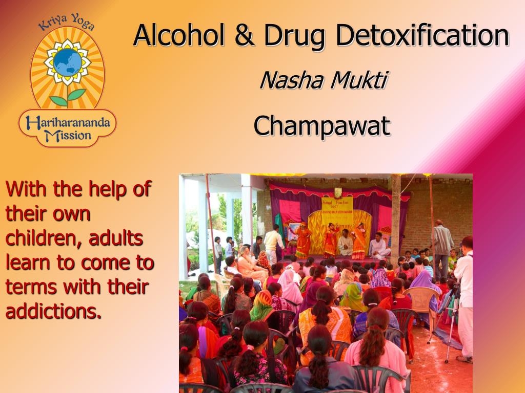 Alcohol & Drug Detoxification Nasha Mukti Champawat At the end of the play, the children ask their fathers to leave this harmful practice, and to take a pledge of sobriety.