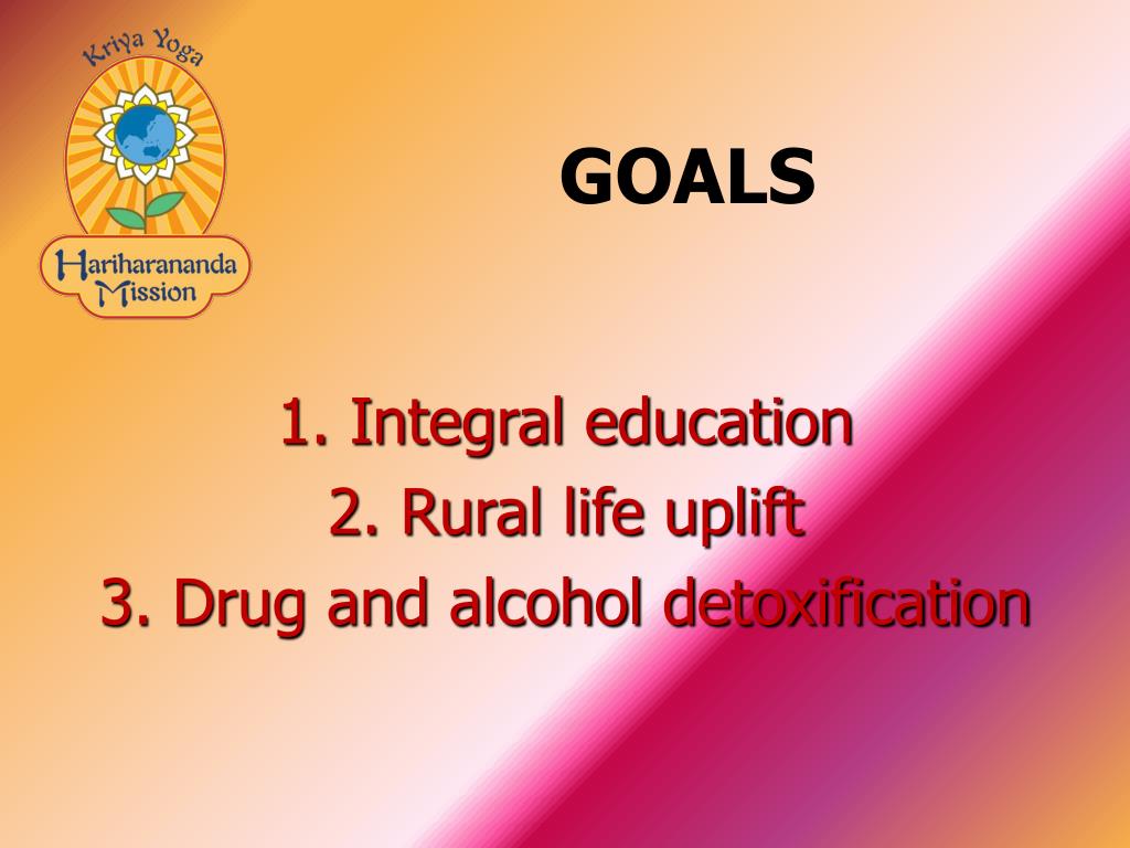 GOALS 1. Integral education 2. Rural life uplift 3. Drug and alcohol detoxification