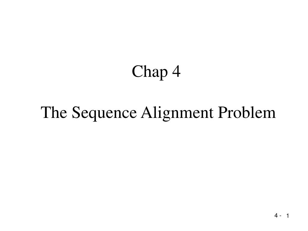 Chap 4 The Sequence Alignment Problem. The Sequence Alignment Problem. Introduction What, Who, Where, Why, When, How The Sequence Alignment Problem The Local Alignment Problem The Affine Gap Penalty. Introduction. What