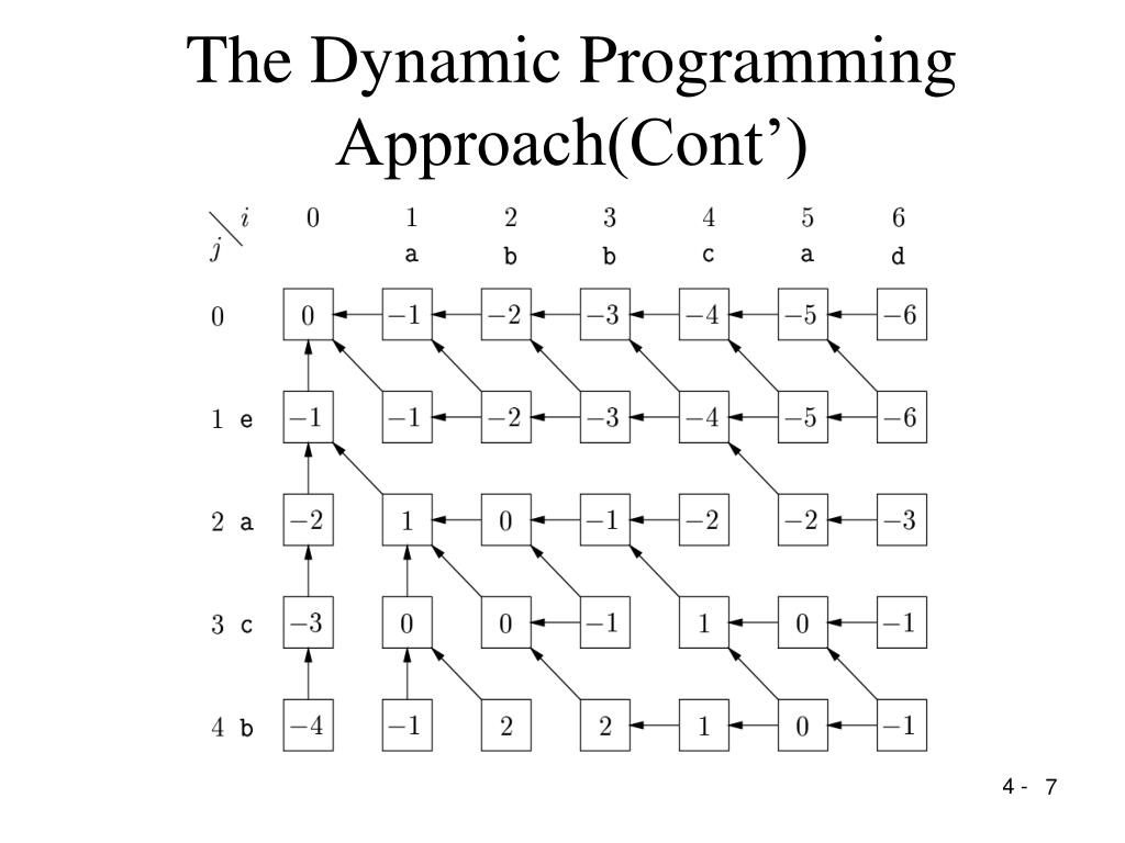 S1= AT-GC-T-C S4 = ATTGCATGC D(S1,S4) = 3 S2= AGAGC S3= TTCTG D(S2,S3) = 5 S2= A--G-A-GC S4= ATTGCATGC D(S2,S4) = 4 4 -