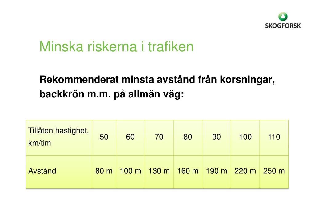 Minska riskerna i trafiken Rekommenderat minsta avstånd från korsningar, backkrön m.m. på allmän väg:
