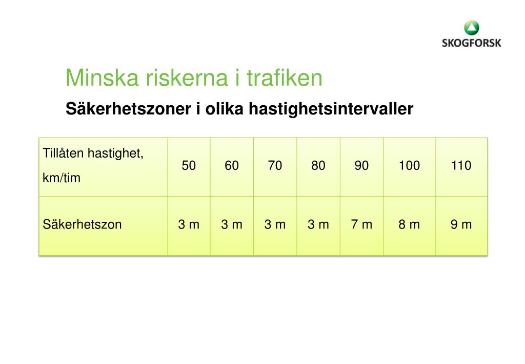 Minska riskerna i trafiken Säkerhetszoner i olika hastighetsintervaller