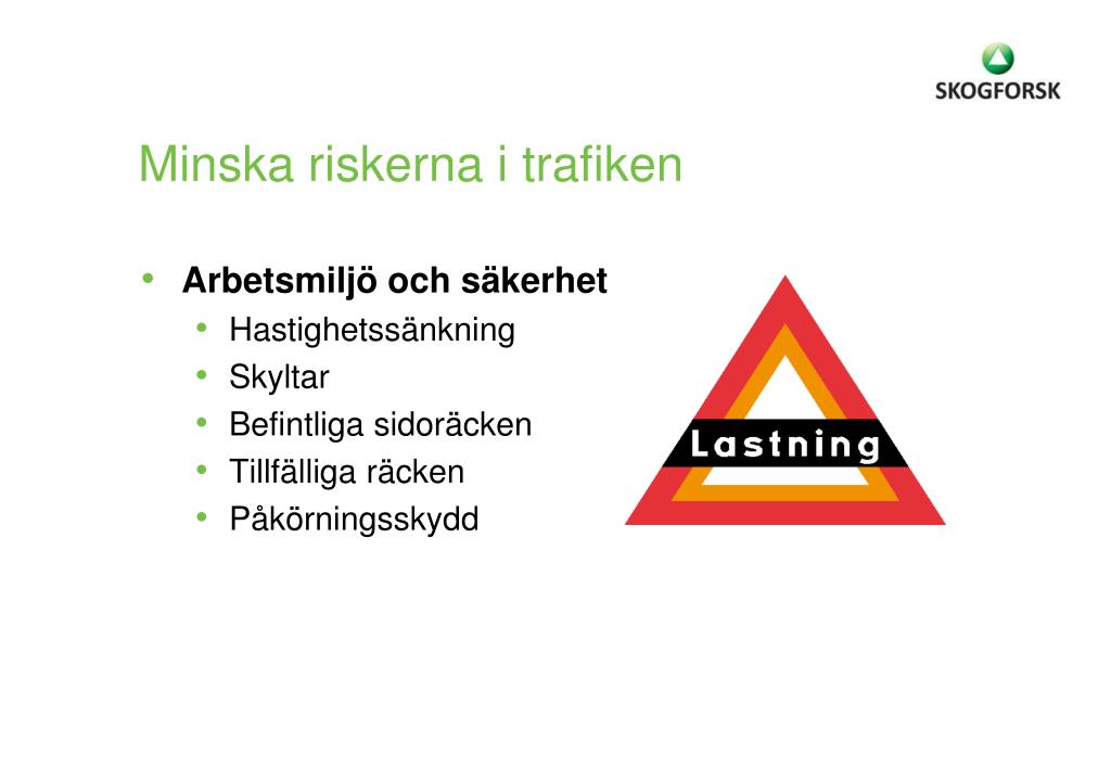 Minska riskerna i trafiken • Arbetsmiljö och säkerhet • Hastighetssänkning • Skyltar • Befintliga sidoräcken • Tillfälliga räcken • Påkörningsskydd