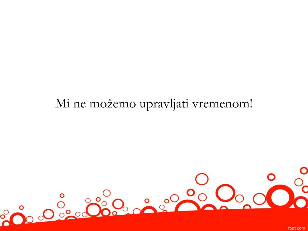 Mi možemo samo upravljati samim sobom u odnosu na vrijeme. • Ne možemo kontrolirati koliko imamo vremena, već samo kako ćemo ga iskoristiti. • Ne možemo birati hoćemo li ga potrošiti, nego samo kako ćemo ga potrošiti.