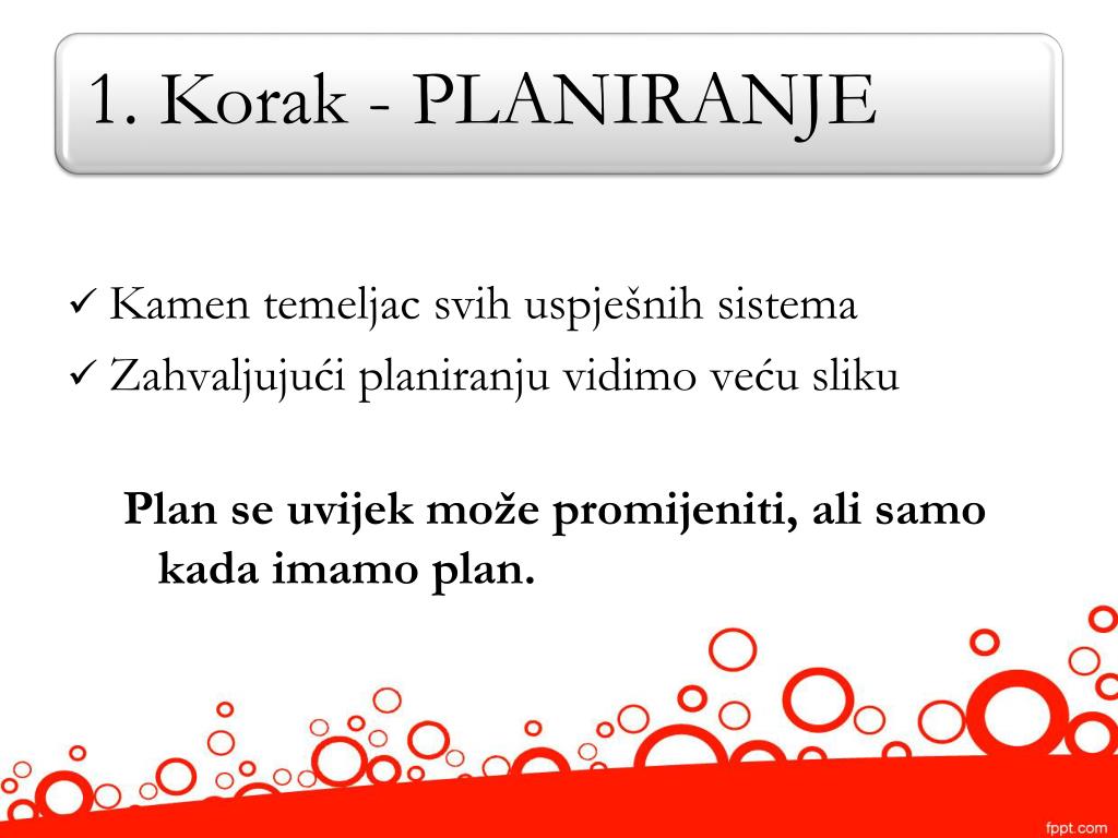Kamen temeljac svih uspješnih sistema • Zahvaljujući planiranju vidimo veću sliku Plan se uvijek može promijeniti, ali samo kada imamo plan.