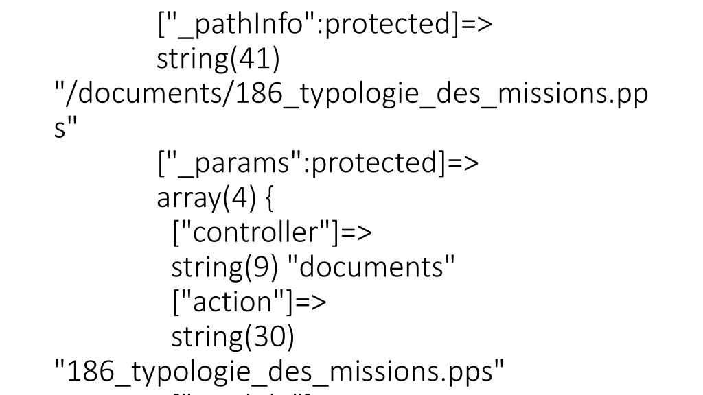 object(ArrayObject)#153 (1) { ["storage":"ArrayObject":private]=> array(3) { ["exception"]=> object(Zend_Controller_Dispatcher_Exception)#152 (8) { ["_previous":"Zend_Exception":private]=> NULL ["message":protected]=> string(40) "Invalid controller specified (documents)" ["string":"Exception":private]=> string(0) "" ["code":protected]=> int(0) ["file":protected]=> string(79) "/var/www/prod.oec-paris.fr/docs/library/Zend/Controller/Dispatcher/Standard.php" ["line":protected]=> int(248) ["trace":"Exception":private]=> array(4) { [0]=> array(6) { ["file"]=> string(65) "/var/www/prod.oec-paris.fr/docs/library/Zend/Controller/Front.php" ["line"]=> int(954) ["function"]=> string(8) "dispatch" ["class"]=> string(35) "Zend_Controller_Dispatcher_Standard" ["type"]=> string(2) "->" ["args"]=> array(2) { [0]=> object(Zend_Controller_Request_Http)#162 (15) { ["_paramSources":protected]=> array(2) { [0]=> string(4) "_GET" [1]=> string(5) "_POST" } ["_requestUri":protected]=> string(41) "/documents/186_typologie_des_missions.pps" ["_baseUrl":protected]=> string(0) "" ["_basePath":protected]=> NULL ["_pathInfo":protected]=> string(41) "/documents/186_typologie_des_missions.pps" ["_params":protected]=> array(4) { ["controller"]=> string(9) "documents" ["action"]=> string(30) "186_typologie_des_missions.pps" ["module"]=> string(5) "front" ["error_handler"]=> *RECURSION* } ["_rawBody":protected]=> NULL ["_aliases":protected]=> array(0) { } ["_dispatched":protected]=> bool(true) ["_module":protected]=> string(5) "front" ["_moduleKey":protected]=> string(6) "module" ["_controller":protected]=> string(5) "error" ["_controllerKey":protected]=> string(10) "controller" ["_action":protected]=> string(5) "error" ["_actionKey":protected]=> string(6) "action" } [1]=> object(Zend_Controller_Response_Http)#164 (8) { ["_body":protected]=> array(0) { } ["_exceptions":protected]=> array(1) { [0]=> *RECURSION* } ["_headers":protected]=> array(0) { } ["_headersRaw":protected]=> array(0) { } ["_httpResponseCode":protected]=> int(200) ["_isRedirect":protected]=> bool(false) ["_renderExceptions":protected]=> bool(false) ["headersSentThrowsException"]=> bool(true) } } } [1]=> array(6) { ["file"]=> string(57) "/var/www/prod.oec-paris.fr/docs/application/Bootstrap.php" ["line"]=> int(103) ["function"]=> string(8) "dispatch" ["class"]=> string(21) "Zend_Controller_Front" ["type"]=> string(2) "->" ["args"]=> array(2) { [0]=> object(Zend_Controller_Request_Http)#162 (15) { ["_paramSources":protected]=> array(2) { [0]=> string(4) "_GET" [1]=> string(5) "_POST" } ["_requestUri":protected]=> string(41) "/documents/186_typologie_des_missions.pps" ["_baseUrl":protected]=> string(0) "" ["_basePath":protected]=> NULL ["_pathInfo":protected]=> string(41) "/documents/186_typologie_des_missions.pps" ["_params":protected]=> array(4) { ["controller"]=> string(9) "documents" ["action"]=> string(30) "186_typologie_des_missions.pps" ["module"]=> string(5) "front" ["error_handler"]=> *RECURSION* } ["_rawBody":protected]=> NULL ["_aliases":protected]=> array(0) { } ["_dispatched":protected]=> bool(true) ["_module":protected]=> string(5) "front" ["_moduleKey":protected]=> string(6) "module" ["_controller":protected]=> string(5) "error" ["_controllerKey":protected]=> string(10) "controller" ["_action":protected]=> string(5) "error" ["_actionKey":protected]=> string(6) "action" } [1]=> object(Zend_Controller_Response_Http)#164 (8) { ["_body":protected]=> array(0) { } ["_exceptions":protected]=> array(1) { [0]=> *RECURSION* } ["_headers":protected]=> array(0) { } ["_headersRaw":protected]=> array(0) { } ["_httpResponseCode":protected]=> int(200) ["_isRedirect":protected]=> bool(false) ["_renderExceptions":protected]=> bool(false) ["headersSentThrowsException"]=> bool(true) } } } [2]=> array(6) { ["file"]=> string(60) "/var/www/prod.oec-paris.fr/docs/library/Zend/Application.php" ["line"]=> int(366) ["function"]=> string(3) "run" ["class"]=> string(9) "Bootstrap" ["type"]=> string(2) "->" ["args"]=> array(0) { } } [3]=> array(6) { ["file"]=> string(48) "/var/www/prod.oec-paris.fr/docs/public/index.php" ["line"]=> int(32) ["function"]=> string(3) "run" ["class"]=> string(16) "Zend_Application" ["type"]=> string(2) "->" ["args"]=> array(0) { } } } ["previous":"Exception":private]=> NULL } ["type"]=> string(23) "EXCEPTION_NO_CONTROLLER" ["request"]=> object(Zend_Controller_Request_Http)#150 (15) { ["_paramSources":protected]=> array(2) { [0]=> string(4) "_GET" [1]=> string(5) "_POST" } ["_requestUri":protected]=> string(41) "/documents/186_typologie_des_missions.pps" ["_baseUrl":protected]=> string(0) "" ["_basePath":protected]=> NULL ["_pathInfo":protected]=> string(41) "/documents/186_typologie_des_missions.pps" ["_params":protected]=> array(3) { ["controller"]=> string(9) "documents" ["action"]=> string(30) "186_typologie_des_missions.pps" ["module"]=> string(5) "front" } ["_rawBody":protected]=> NULL ["_aliases":protected]=> array(0) { } ["_dispatched":protected]=> bool(true) ["_module":protected]=> string(5) "front" ["_moduleKey":protected]=> string(6) "module" ["_controller":protected]=> string(9) "documents" ["_controllerKey":protected]=> string(10) "controller" ["_action":protected]=> string(30) "186_typologie_des_missions.pps" ["_actionKey":protected]=> string(6) "action" } } }