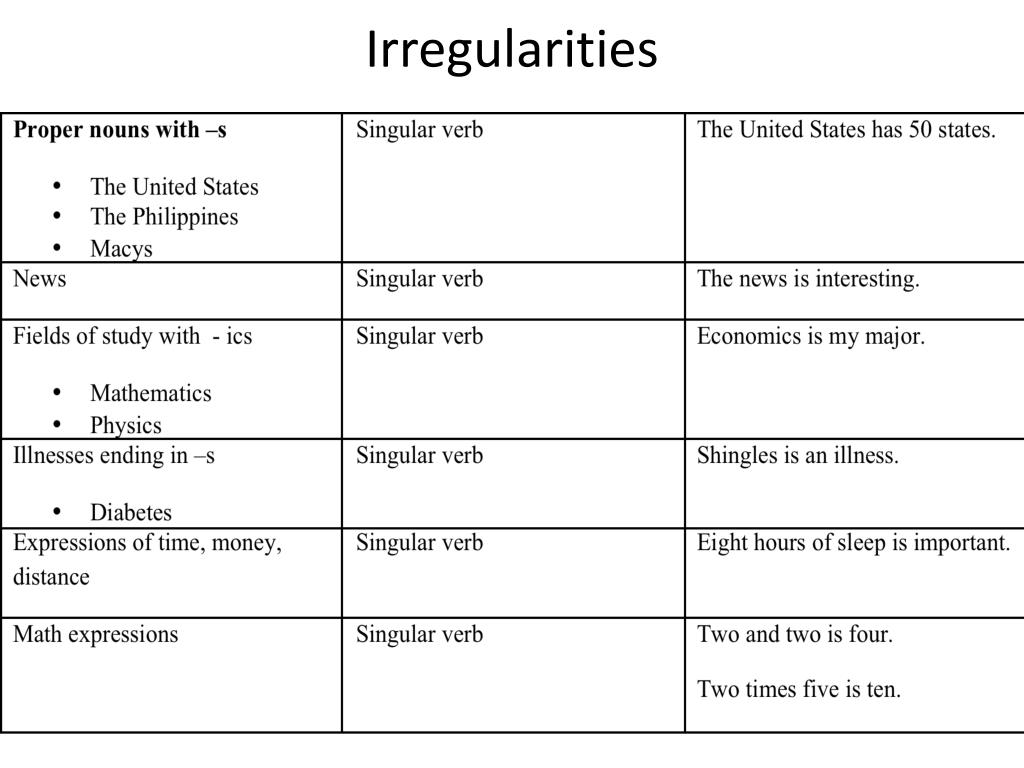 Ex. 19, p. 94 2. The news ... is 3. NY Times is 4. Physics seeks 5. Statistics is 6. The statistics... are 7. 50 mins is 8. $20 is 9. people ... do 10. The police are 11. Rabies is 12. The French are 13. French is 14. Japanese commute 15 Portuguese is ... isn't it 16. The poor are... 17. The blind want... 18. effect ... depends people are there have been instances