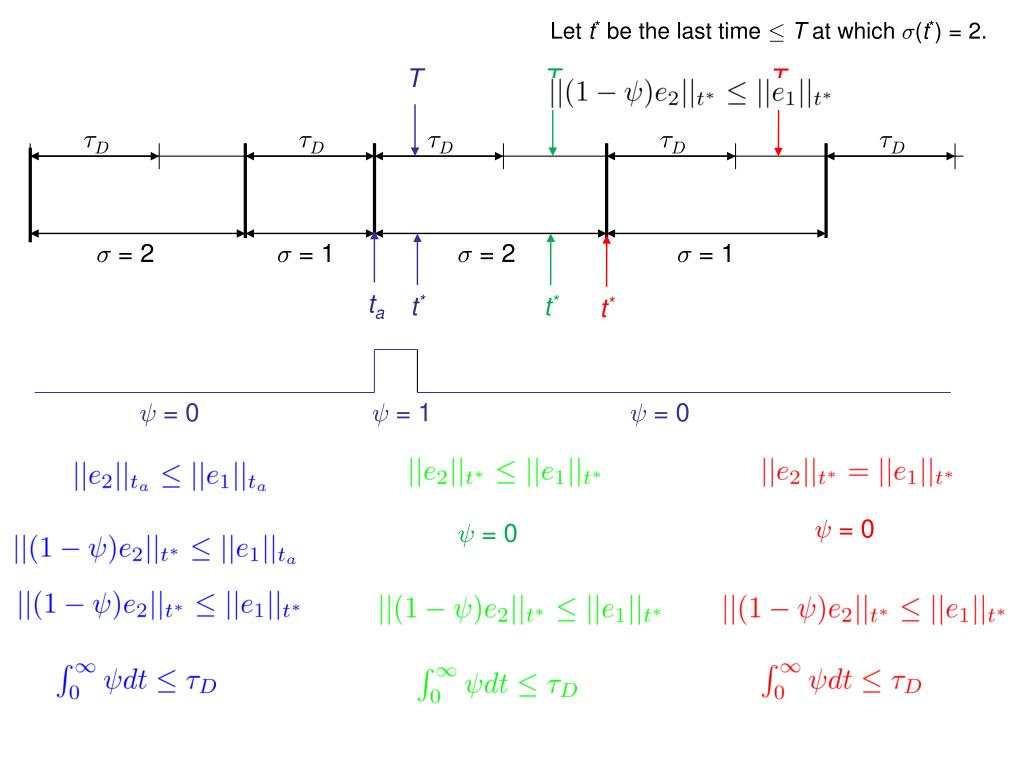 Let t* be the last time ·T at which ¾(t*) = 2. For any T>0 there is a piecewise constant signal à : [0,1) ! {0, 1} such that where initialize monitor: y n dwell time switching logic y n