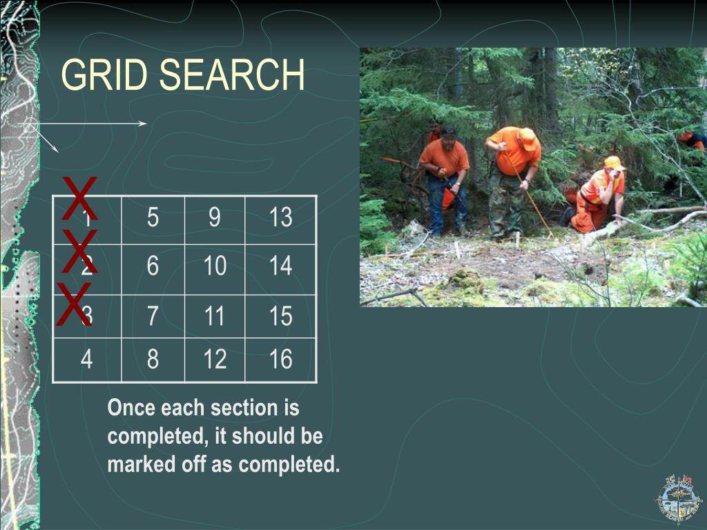 Once each section is completed, it should be marked off as completed. GRID SEARCH X X X
