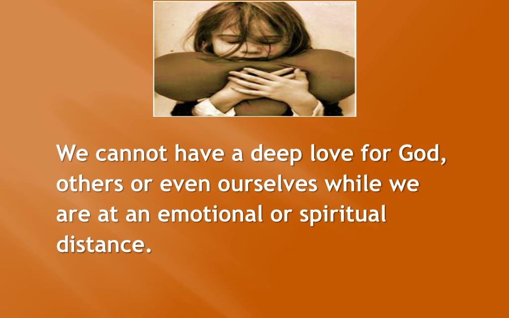 We cannot have a deep love for God, others or even ourselves while we are at an emotional or spiritual distance.