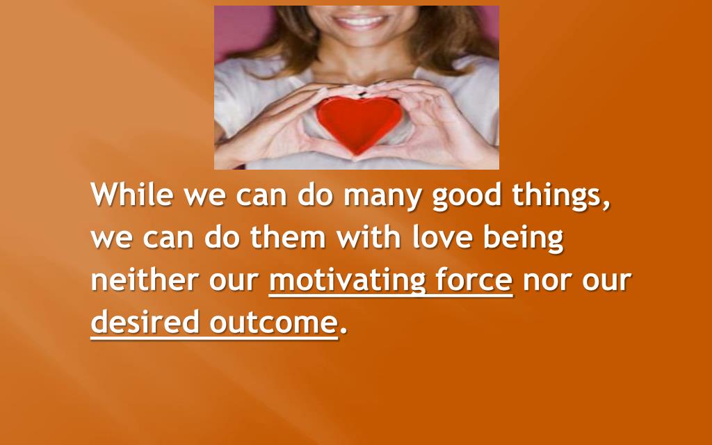 While we can do many good things, we can do them with love being neither our motivating force nor our desired outcome.