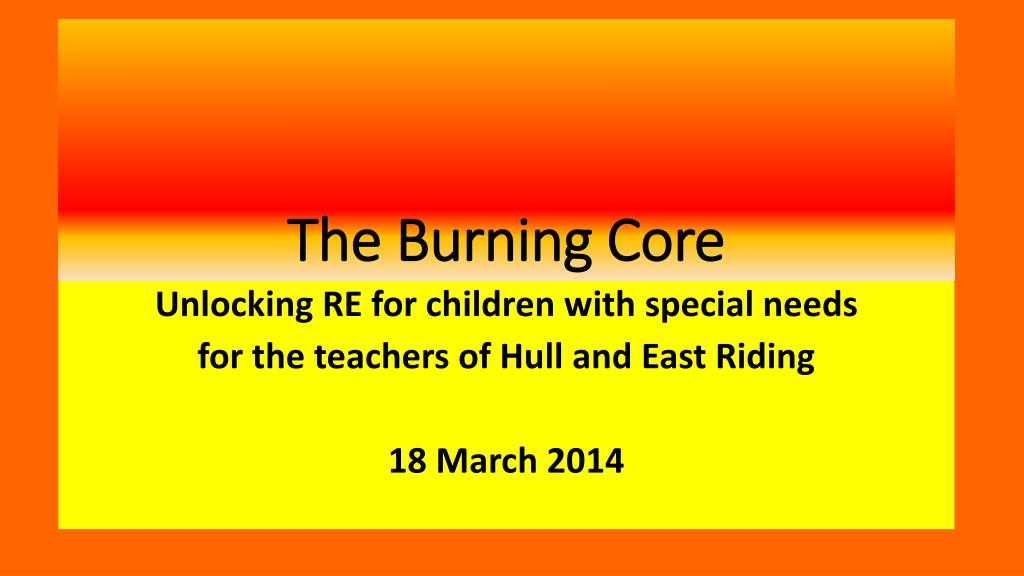 The Burning Core Unlocking RE for children with special needs for the teachers of Hull and East Riding 18 March 2014
