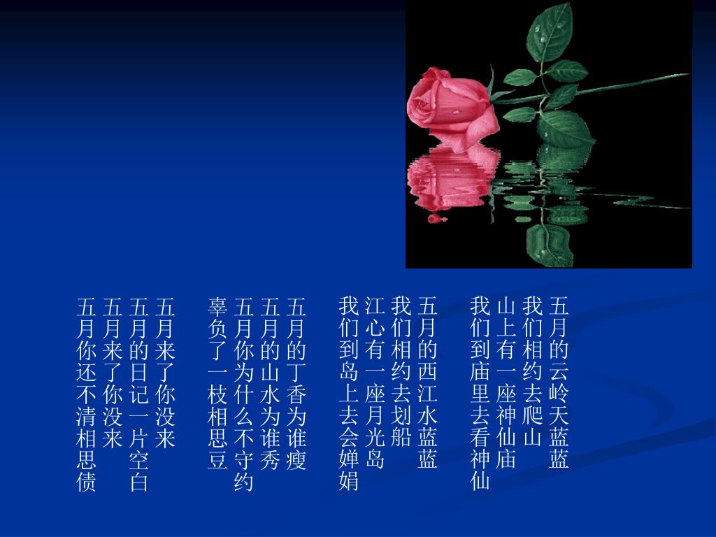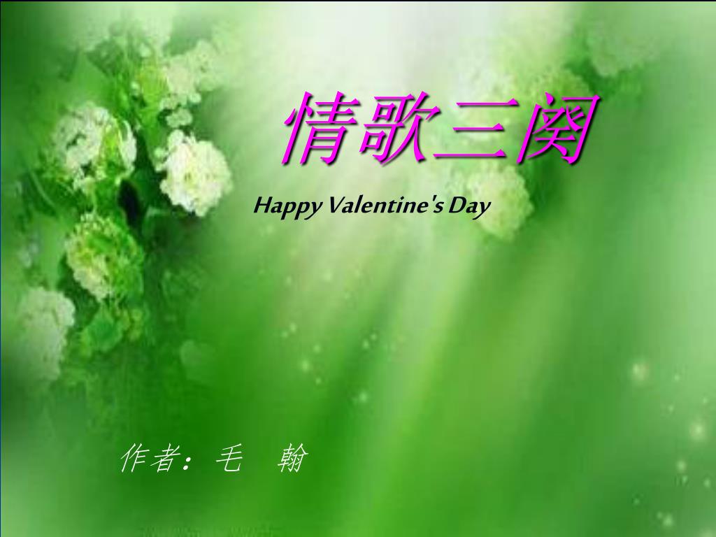 情歌三阕. Happy Valentine's Day. 作者:毛 翰. 1 、我的恋人在远方. 我的恋人在 远方. 在一个 幽静 的小村庄. 有一年 秋天 枫叶红. 她做了别人家的 新娘. 从此我怕见 天边 的月. 怕见流泪的 红烛光. 高山流水 天然 调. 如今 都僵在琴弦上. 也曾让 鸽子 捎过信. 问 起过那束夜来香. 夜来香 至今 无消息. 鸽子也不知流落 何方. 2 、预约情缘. 预约一段 情, 预约一段 缘. 预约一段 情缘 在春天. 春天的 风 轻柔,春天的 雨 缠绵.