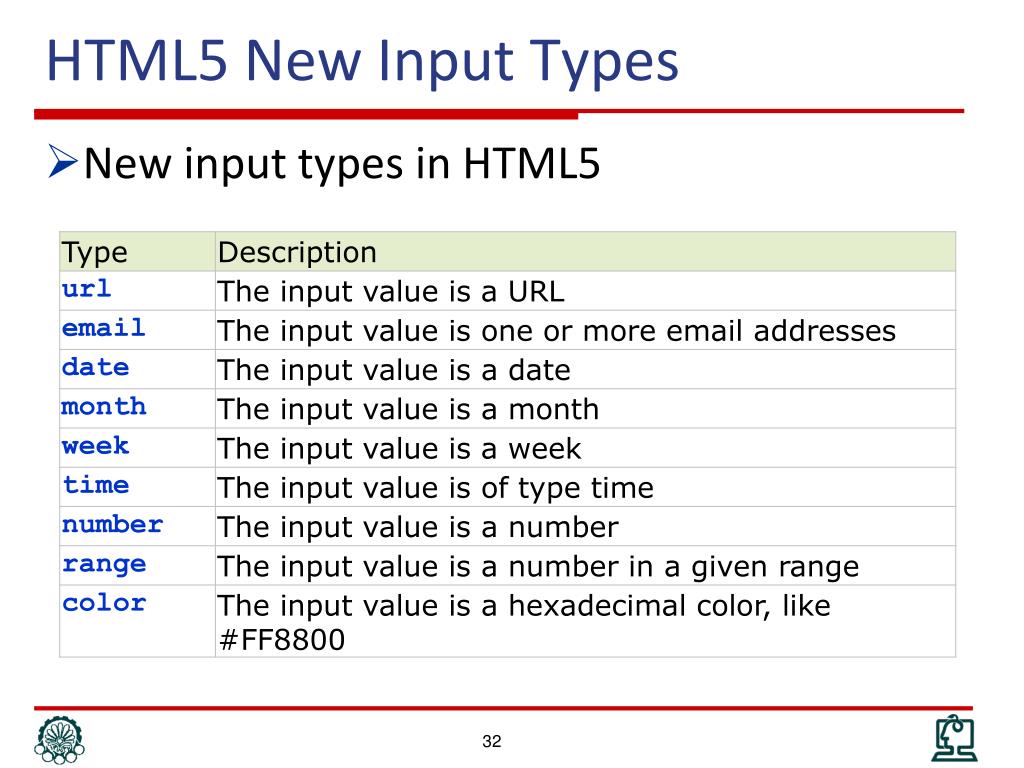 HTML5 New Input Types • New input types in HTML5