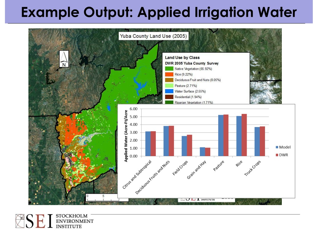 Nine land use scenarios reflect uncertain population growth and land use patters • Three population projections for the Central Valley • Low population: 11 million habitants • Current trends: 13 million habitants • High population: 16 million habitants • Three urban density scenarios • Low: More single family homes, less irrigated agricultural land • Current • High: More multi family homes, more irrigated agricultural land