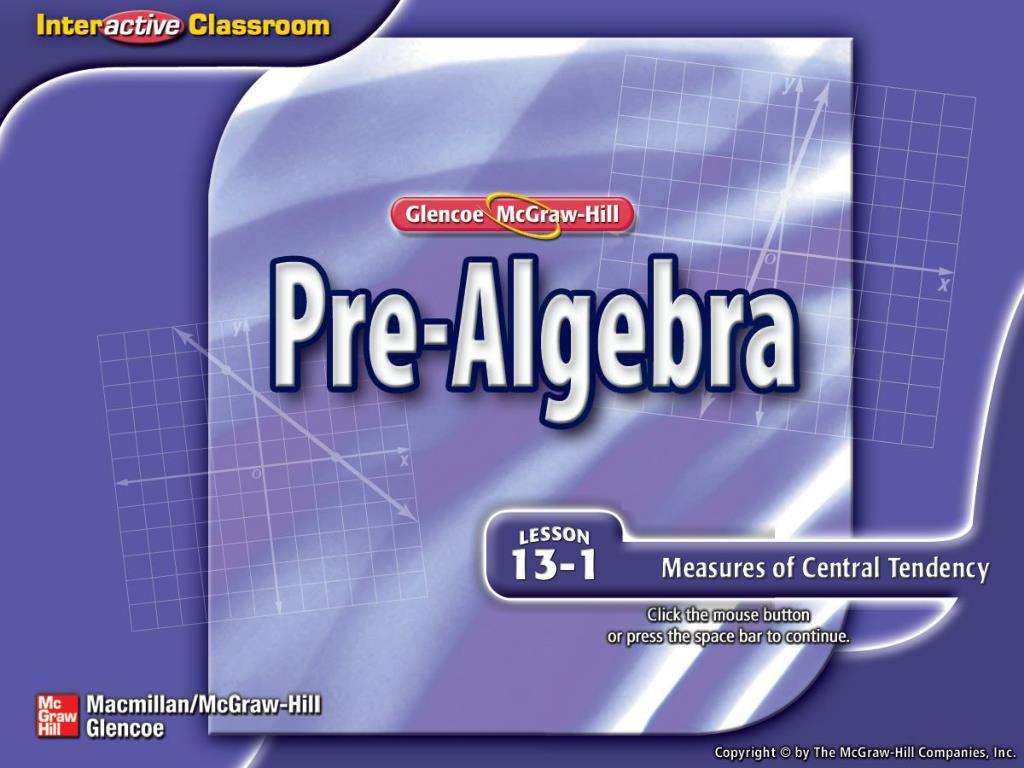 You have already found the mean or average of a data set. (Lesson 2–5) • Use the mean, median, and mode as measures of central tendency. • Choose an appropriate measure of central tendency and recognize measures of statistics. Then/Now