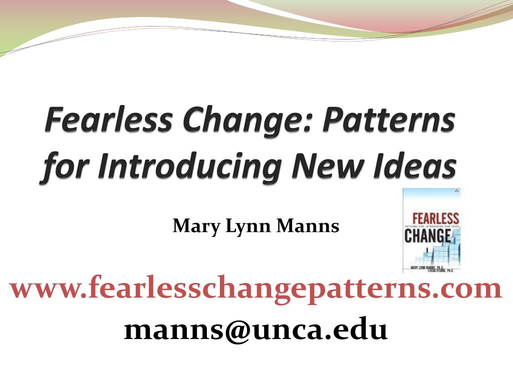 Fearless Change: Patterns for Introducing New Ideas Mary Lynn Manns www.fearlesschangepatterns.com manns@unca.edu