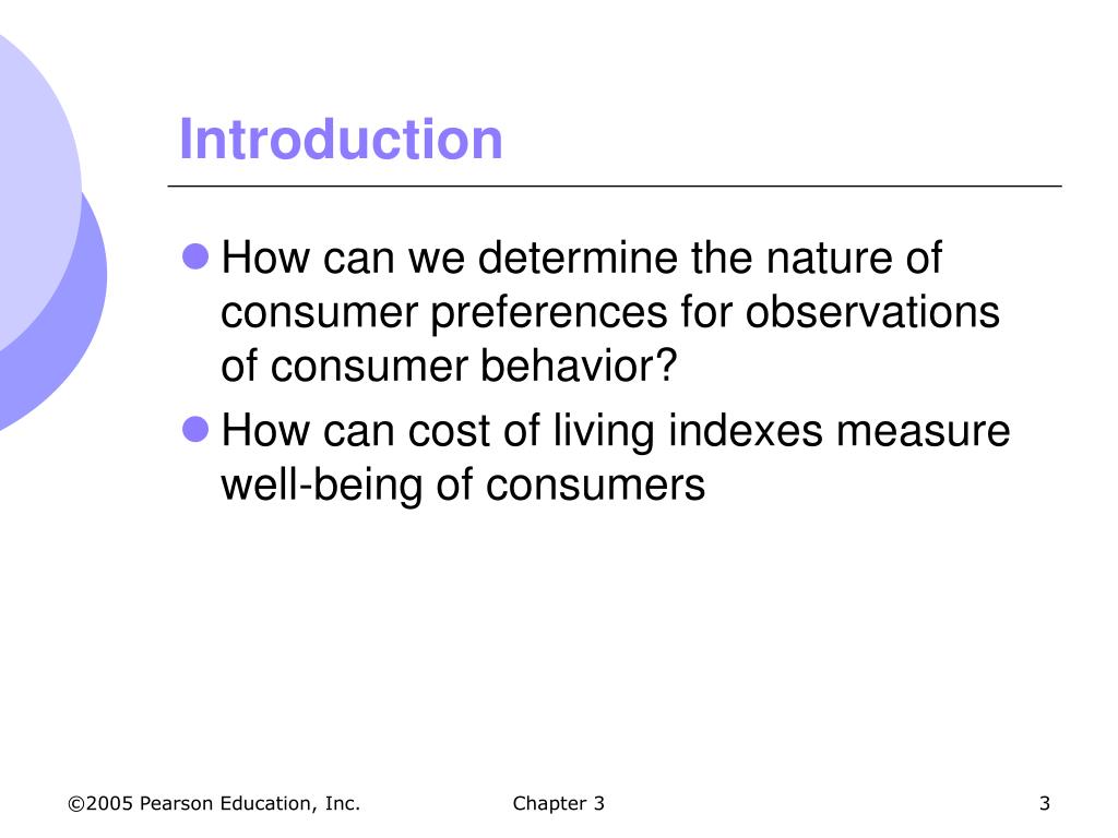 Introduction • How can we determine the nature of consumer preferences for observations of consumer behavior? • How can cost of living indexes measure well-being of consumers Chapter 3