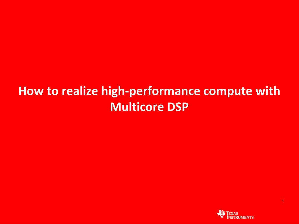 How to realize high-performance compute with Multicore DSP. C667x Target Applications (Non- Telecom). HPC, Imaging and Medical. Mission Critical. Test and Automation. Emerging Others. Video Infrastructure. Infrastructure Audio. Innovations. Emerging Broadband .