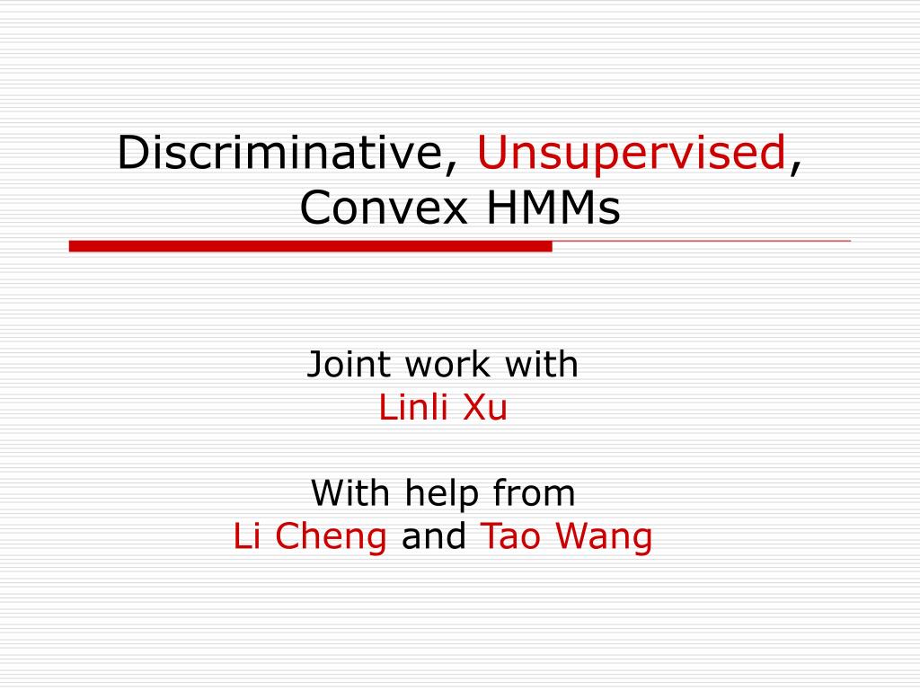 Discriminative, Unsupervised, Convex HMMs Joint work with Linli Xu With help from Li Cheng and Tao Wang