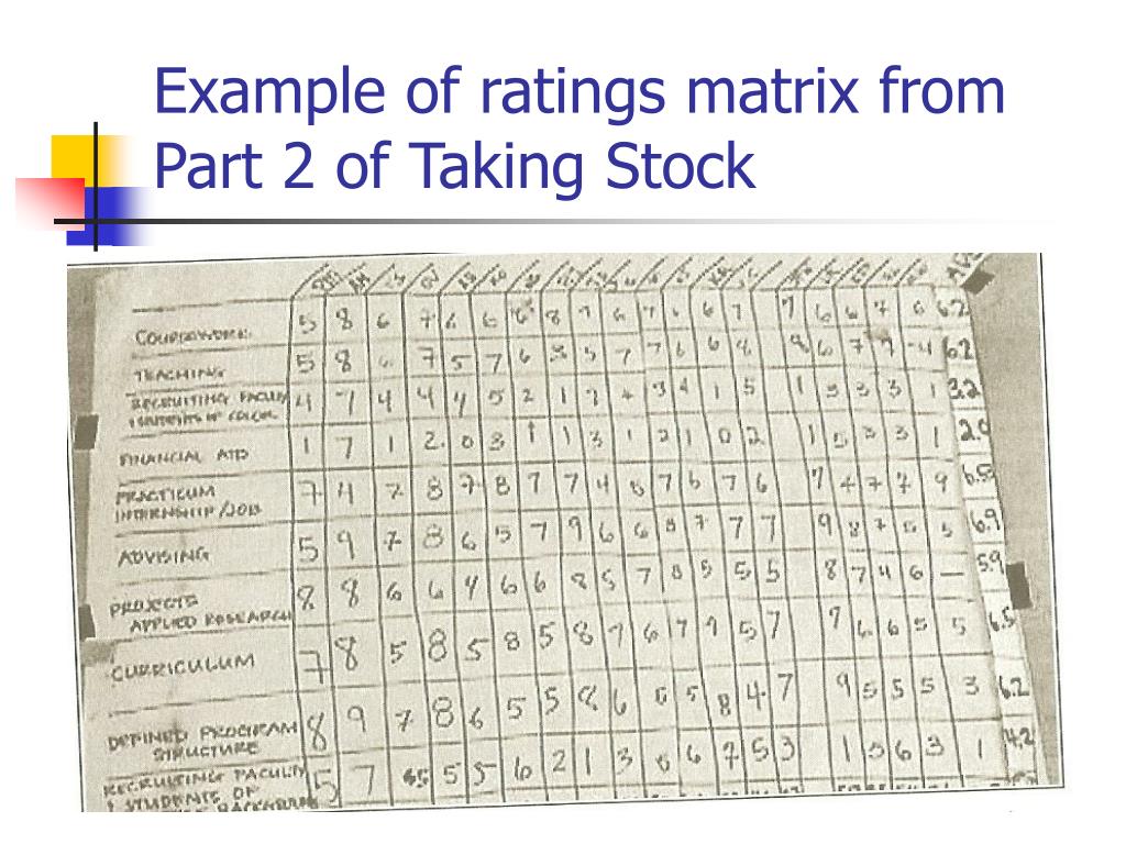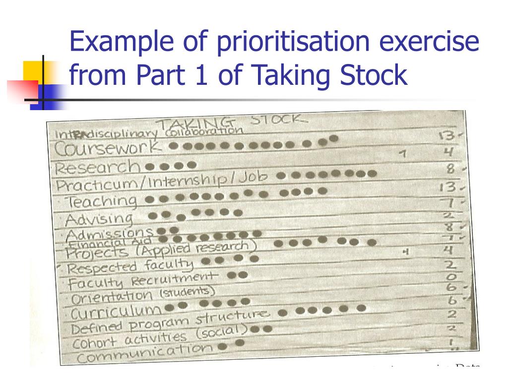 Example of prioritisation exercise from Part 1 of Taking Stock