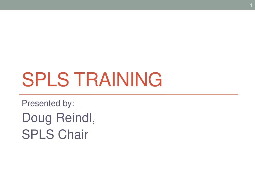 SPLS TRAINING Presented by: Doug Reindl, SPLS Chair