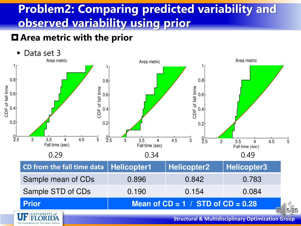 Problem2: Comparing predicted variability and observed variability using prior • Area metric with the prior • Data set 3