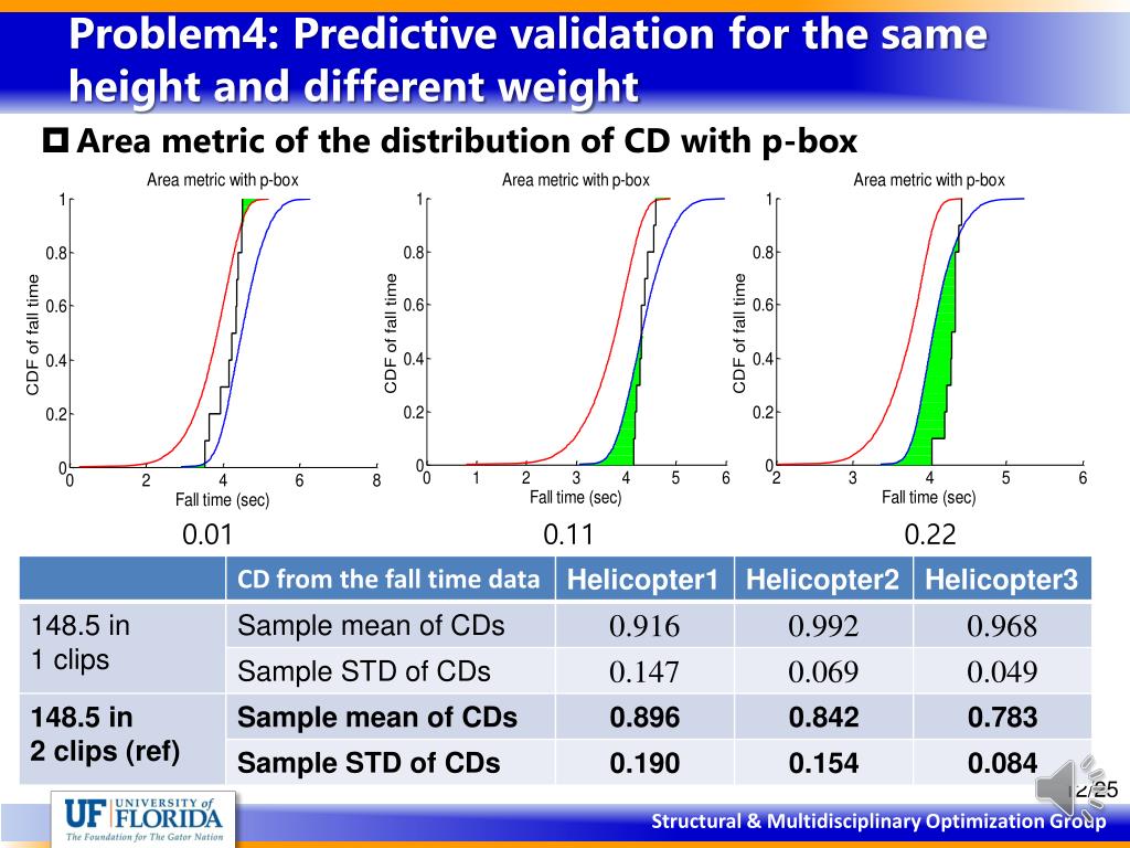 Problem4: Predictive validation for the same height and different weight • Area metric of the distribution of CD with p-box