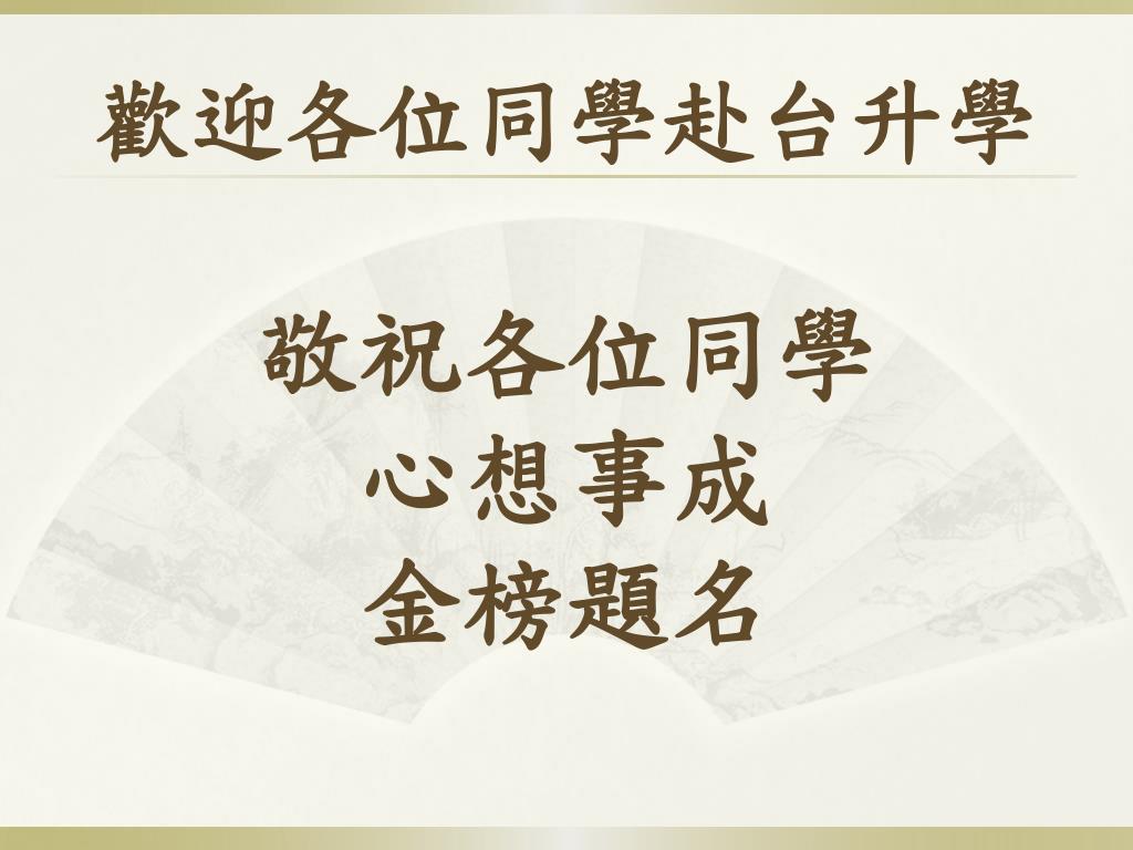 歡迎各位同學赴台升學敬祝各位同學心想事成金榜題名歡迎各位同學赴台升學敬祝各位同學心想事成金榜題名