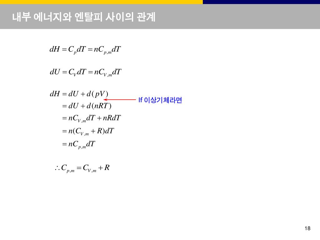 내부 에너지와 엔탈피 사이의 관계 If 이상기체라면