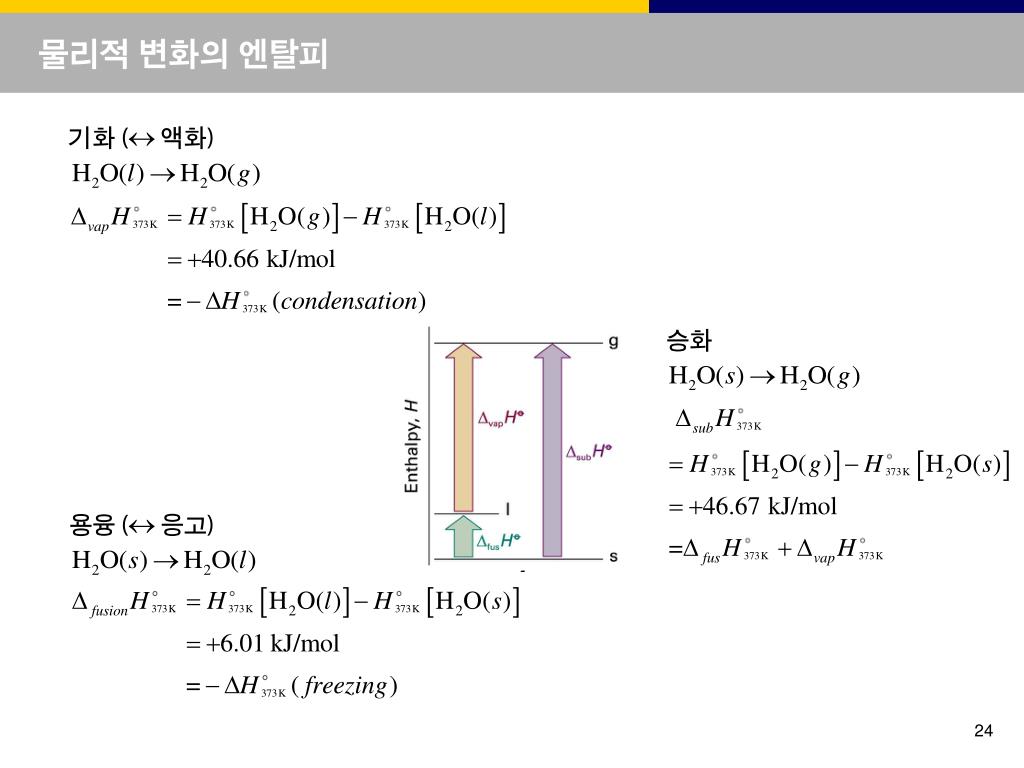 물리적 변화의 엔탈피 기화 ( 액화) 승화 용융 ( 응고)