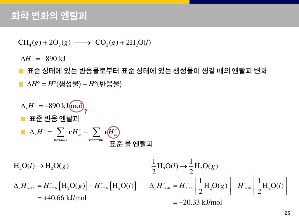 목 차 기본 개념 2.1 일, 열, 및 에너지 2.2 내부 에너지 2.3 팽창 일 2.4 열의 이전 2.5 엔탈피 2.6 단열 변화 열화학 2.7 표준 엔탈피 변화 2.8 표준 생성 엔탈피 2.9 반응 엔탈피의 온도 의존 상태 함수와 완전 미분 2.10 완전 미분과 불완전 미분 2.11 내부 에너지의 변화 2.12 Joule-Thomson 효과