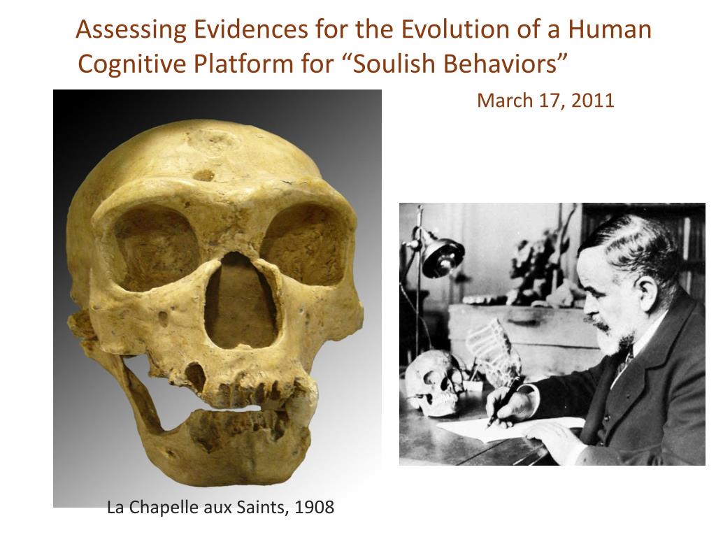 Assessing Evidences for the Evolution of a Human Cognitive Platform for “Soulish Behaviors” March 17, 2011 La Chapelle aux Saints, 1908