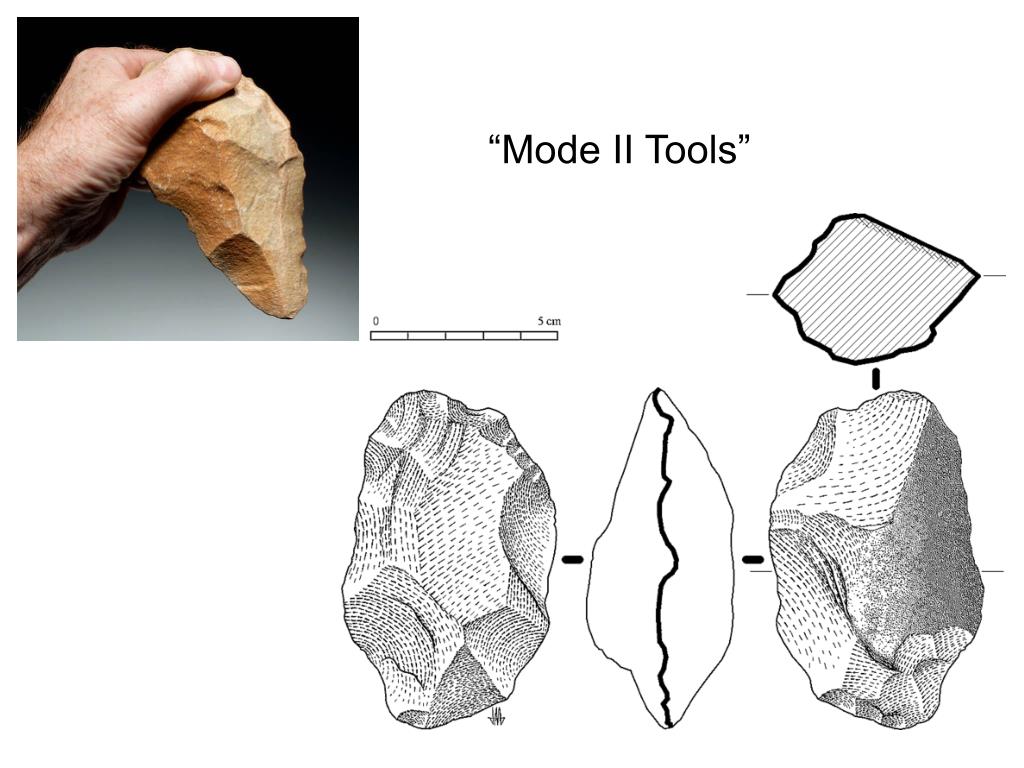 Oldowan tools (“Mode I”) Oldowan tools span time frame 2.6 m.a. to 1.6 m.a.; known from E. Africa and S. Africa only