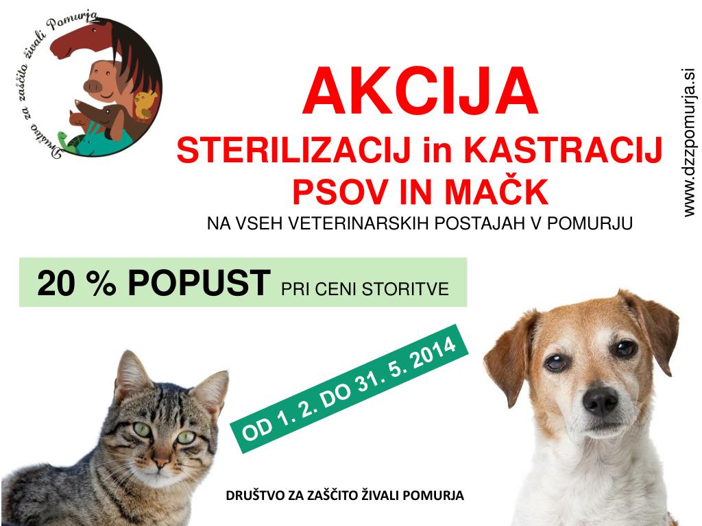 www.dzzpomurja.si AKCIJA STERILIZACIJ in KASTRACIJ PSOV IN MAČK NA VSEH VETERINARSKIH POSTAJAH V POMURJU 20 % POPUST PRI CENI STORITVE OD 1. 2. DO 31. 5. 2014 DRUŠTVO ZA ZAŠČITO ŽIVALI POMURJA